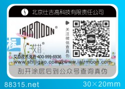 微信公眾號防偽是二維碼防偽重要形式,標一防偽是集微信公眾號防偽系統開發及標簽制作為一體的高科技公司,在此領域具有強大的實力與豐富的經驗,部分客戶樣標如下: