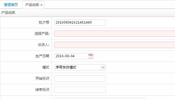 出庫(kù)管理主設(shè)定溯源信息的重要環(huán)節(jié),選擇產(chǎn)品,選擇收貨人,生產(chǎn)日期可以更改。