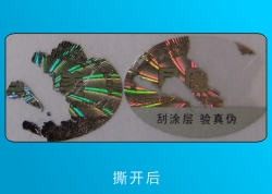 易碎紙不干膠材料的面料是一種短纖維、抗拉強度很低的紙,其黏合層是一種高黏度黏合劑。由于黏合層的黏合力大于紙張的自身強度,所以,用易碎紙不干膠材料印制的不干膠標簽,貼到商品上后就無法整體揭下來,只能一次性使用,從而防止造假者用真標簽來推銷仿制產品。