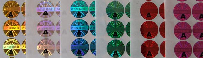 激光標所用的材料主要是鍍鋁膜,根據加工工藝不同,又有一次性使用的和永久性的膜。所謂一次性即撕開標簽表面后,標簽就會被破壞,不能重復使用(如上圖所示);而永久性即撕開標簽后,標簽完好。除了常用的鍍鋁膜還有介質膜、VOID專用膜、燙印膜等等。