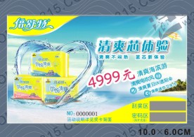刮獎(jiǎng)卡是將獎(jiǎng)項(xiàng)名稱(chēng)直接印在卡面上,并在相應(yīng)位置用刮刮銀油墨將其遮蓋,消費(fèi)者只要刮開(kāi)此區(qū)域即可知道中獎(jiǎng)與否,使用方便,給消費(fèi)者帶來(lái)的觸動(dòng)也是非常直接的。刮獎(jiǎng)卡又稱(chēng)刮刮卡。