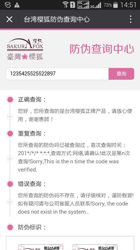 進入個性化的查詢頁面,輸入標簽上的16位防偽密碼,點查詢