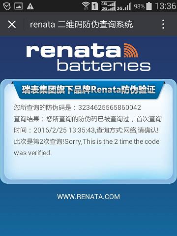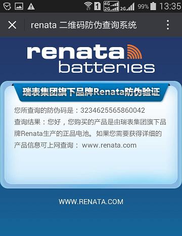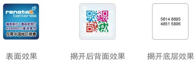 以下是瑞士鐘表集團旗下電池品牌RENATA使用的我公司開發(fā)的二維碼防偽標簽。