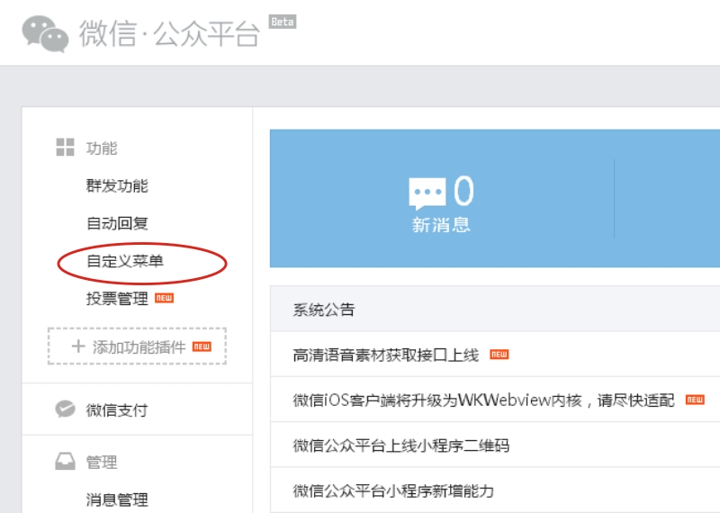 (2)公眾號需要通過認證,因為只有通過認證才能添加外部鏈接。
